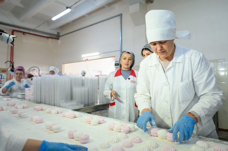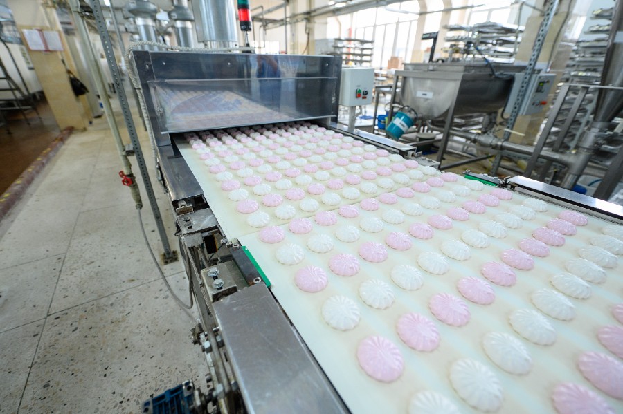 На этой линии зефир делают по ускоренной технологии: от начала до получения готового продукта проходит всего около двух часов. За сутки выпускают до девяти тонн сладостей.