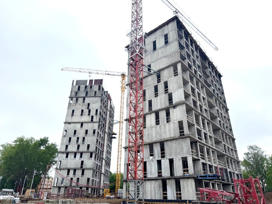 На начальном этапе будут построены 2 дома (на 17 и 18 этажей) и 5-уровневый открытый паркинг.