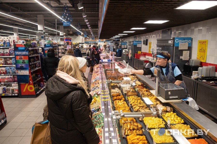 Мы отправились закупаться в минский супермаркет на проспекте Дзержинского, 106, что в ТЦ "Магнит". С собой – длинный список того, с чем будем встречать старый Новый год. Давайте проверять, можно ли найти все в кулинарии "Санты", а главное – во сколько это нам обойдется.