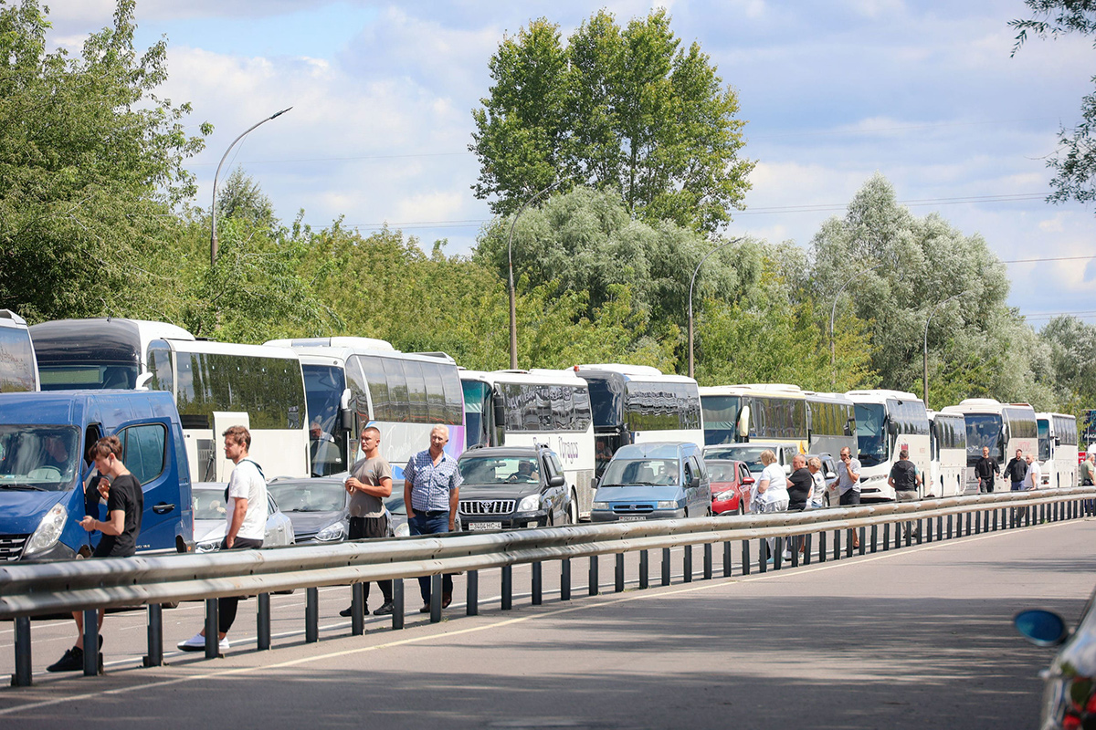 А в сопредельном с Польшей пункте пропуска "Брест" выстроились 1310 легковых автомобилей и 10 автобусов.