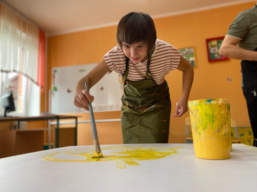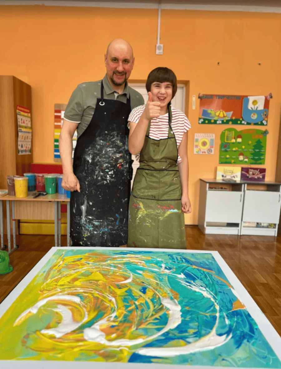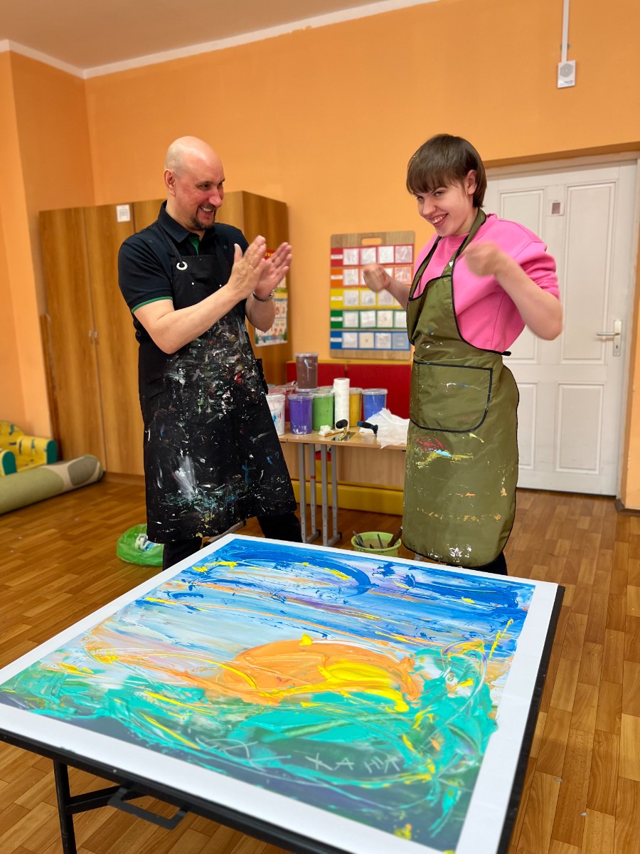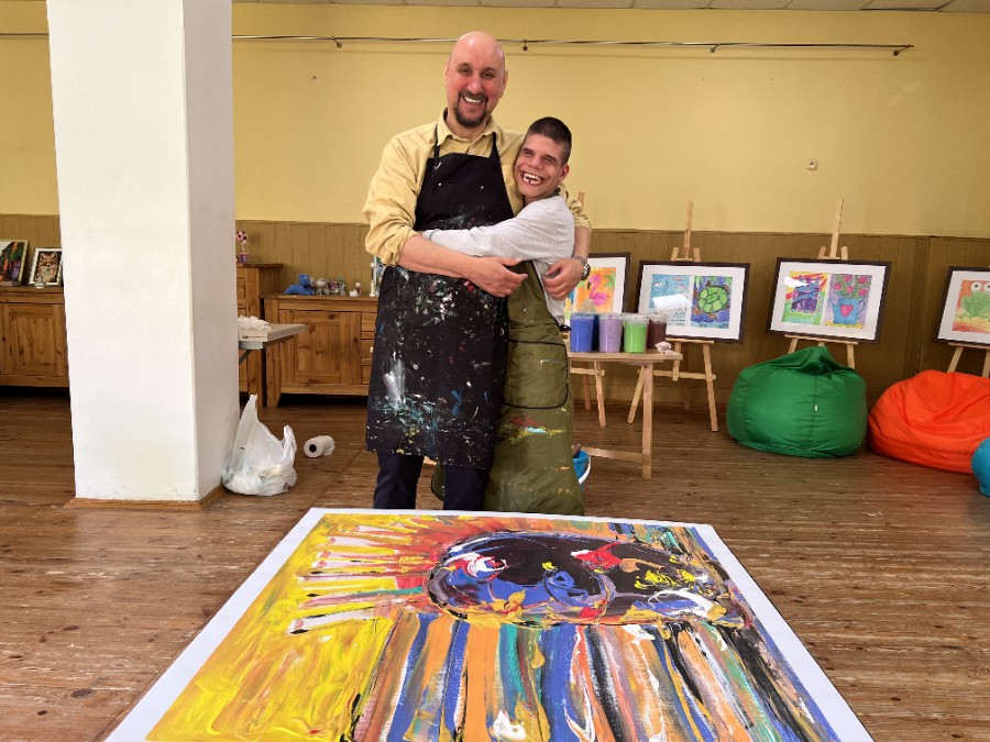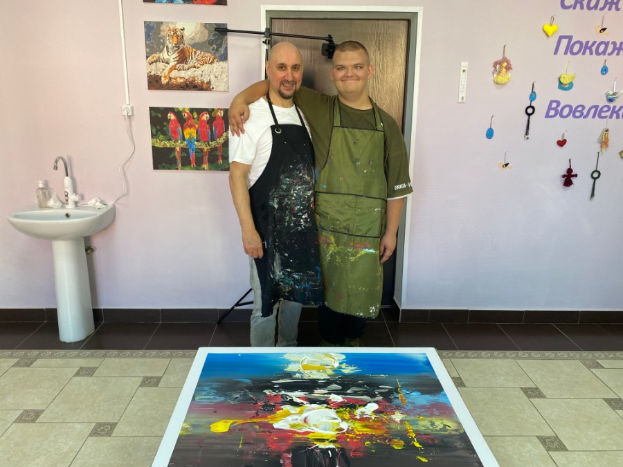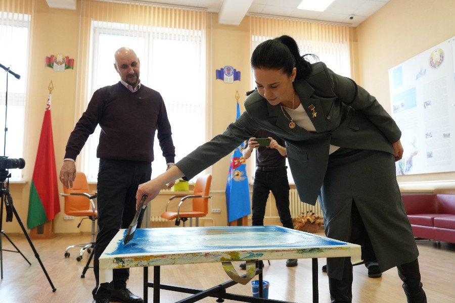 "Мы решили посодействовать девяти пансионатам не только в укреплении материально‑технической базы, но и в социализации особенных детей. Пригласили известного художника, и вместе с воспитанниками он создает настоящие работы: через живопись дети рассказывают свои истории", – говорит председатель правления ОО "Белорусский фонд мира" Максим Мисько.