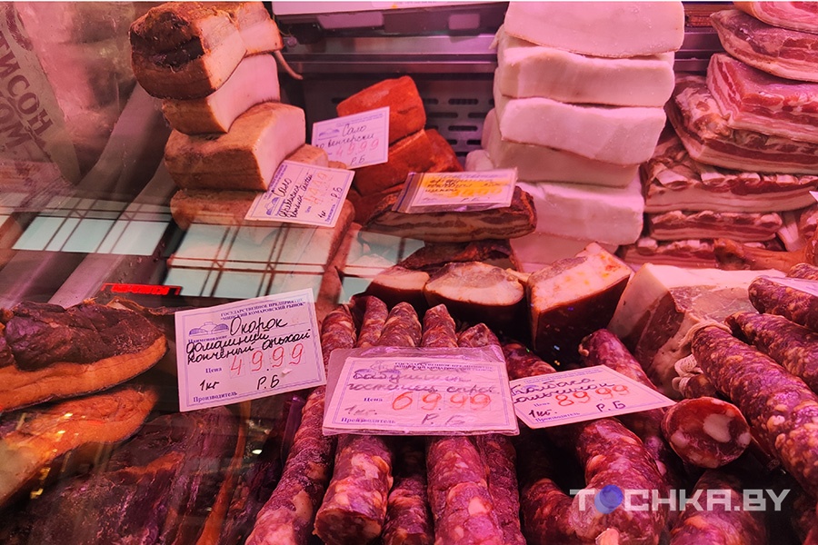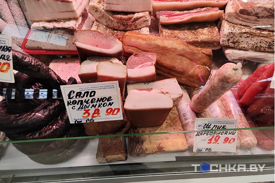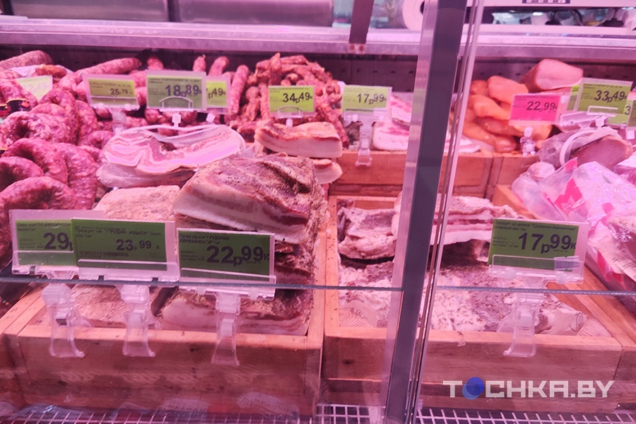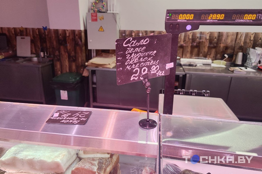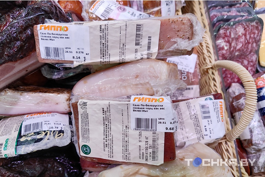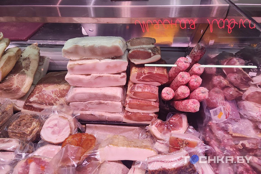 Также мы наткнулись на "Мясную лавку" в ТРЦ Palazzo. Здесь сало присутствовало в нескольких вариантах, выглядело оно хорошо. Цена на все – Br29,9 за кг.