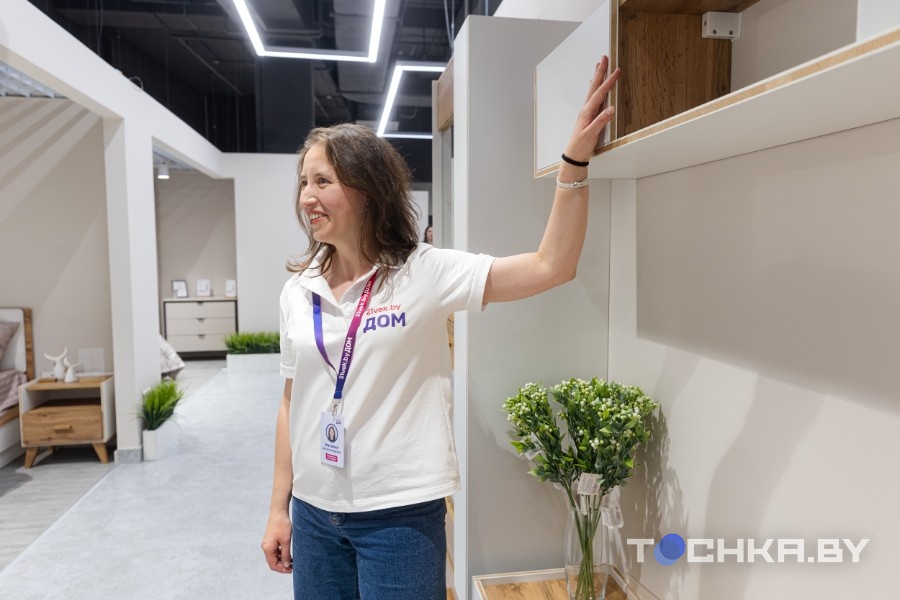 Пространство открыли в ТРЦ "Червенский". На 2700 "квадратах" представлены готовые интерьерные решения: гостиные, спальни, кухни, рабочие и детские зоны.