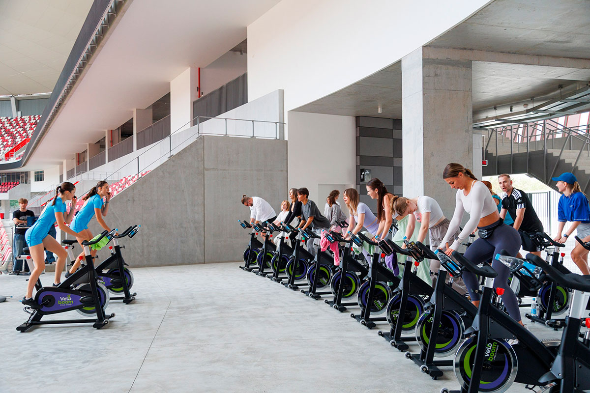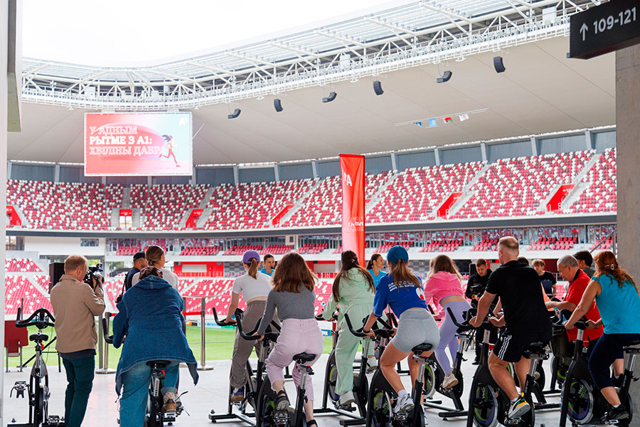 На Национальном футбольном стадионе необычно стартовала спортивно-благотворительная инициатива "У адным рытме з А1: хвіліны дабра". Вместо традиционной пресс-конференции для СМИ и блогеров состоялась энергичная тренировка по сайклингу.