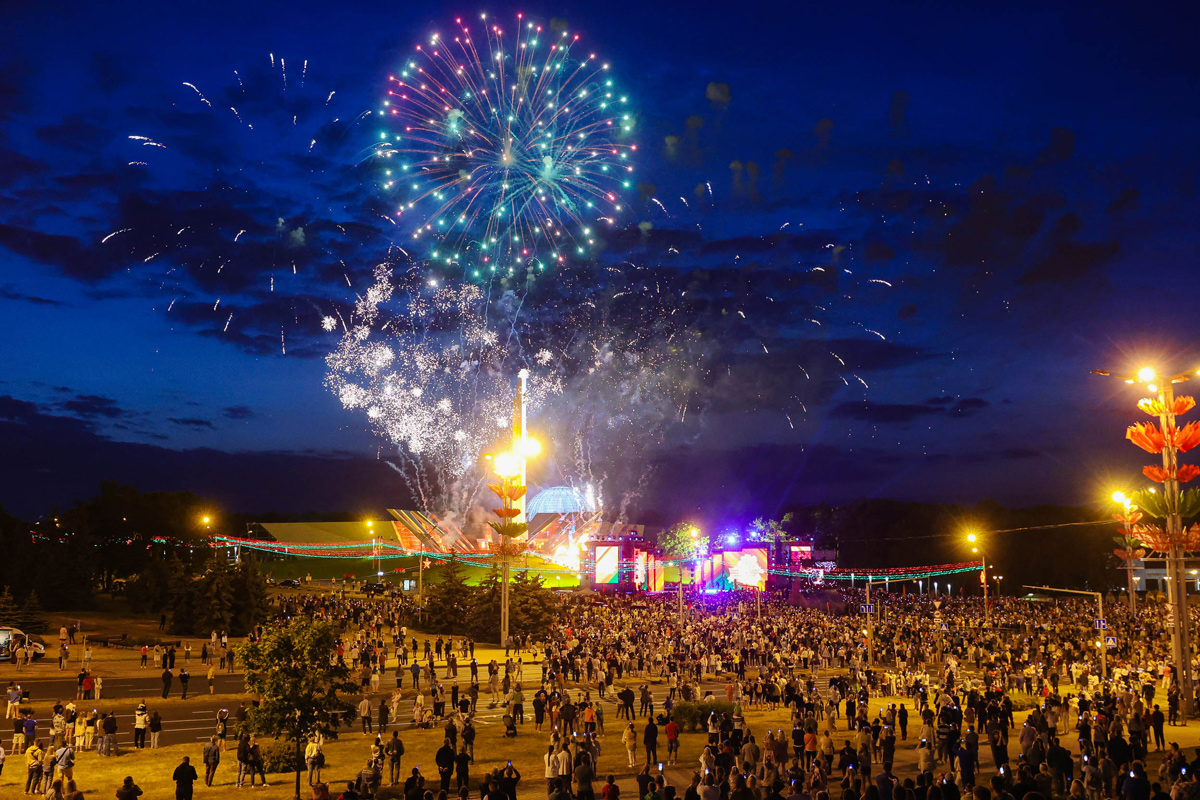 Вечером основная часть празднования переместится на Октябрьскую площадь. В 21:30 здесь начнется концерт с участием заслуженных артистов Беларуси.