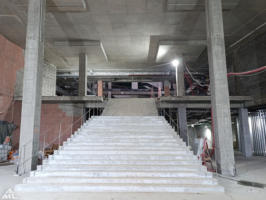 На объекте трудятся почти 350 человек – сейчас основные работы проходят внутри здания. Там активничают штукатуры, стяжечники, электромонтажники.