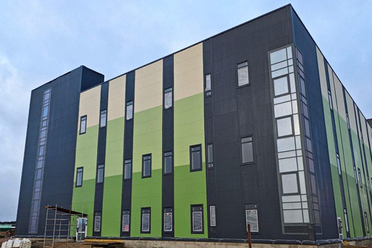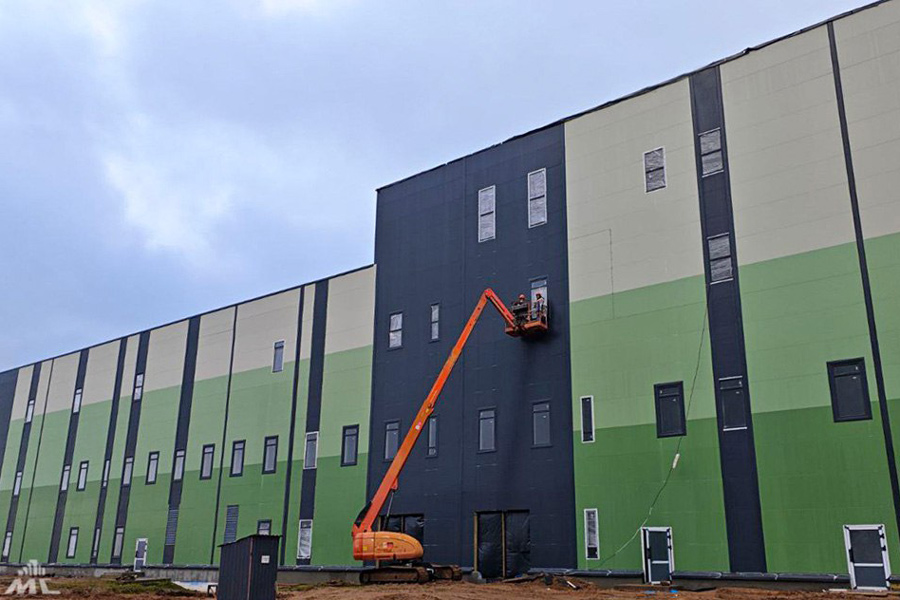 Известно, что корпус будет переменной этажности – три-четыре уровня. Сейчас завершаются работы на первом пусковом комплексе – закрывается контур здания и подводятся сети.