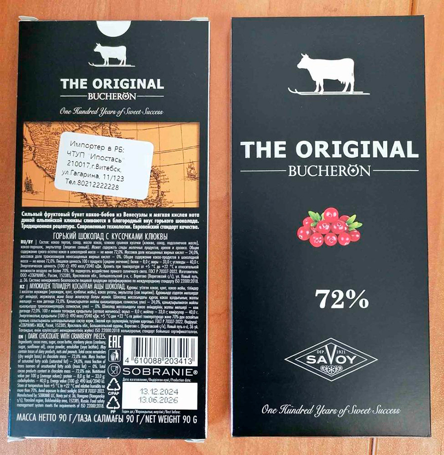 Вопросы появились к продукции, которая производится в Большесельском районе Ярославской области. Речь о шоколаде Bucheron. К счастью, под запрет попала не вся продукция под этим брендом, а лишь 90-грамммовая плитка с кусочками клюквы с маркировкой.