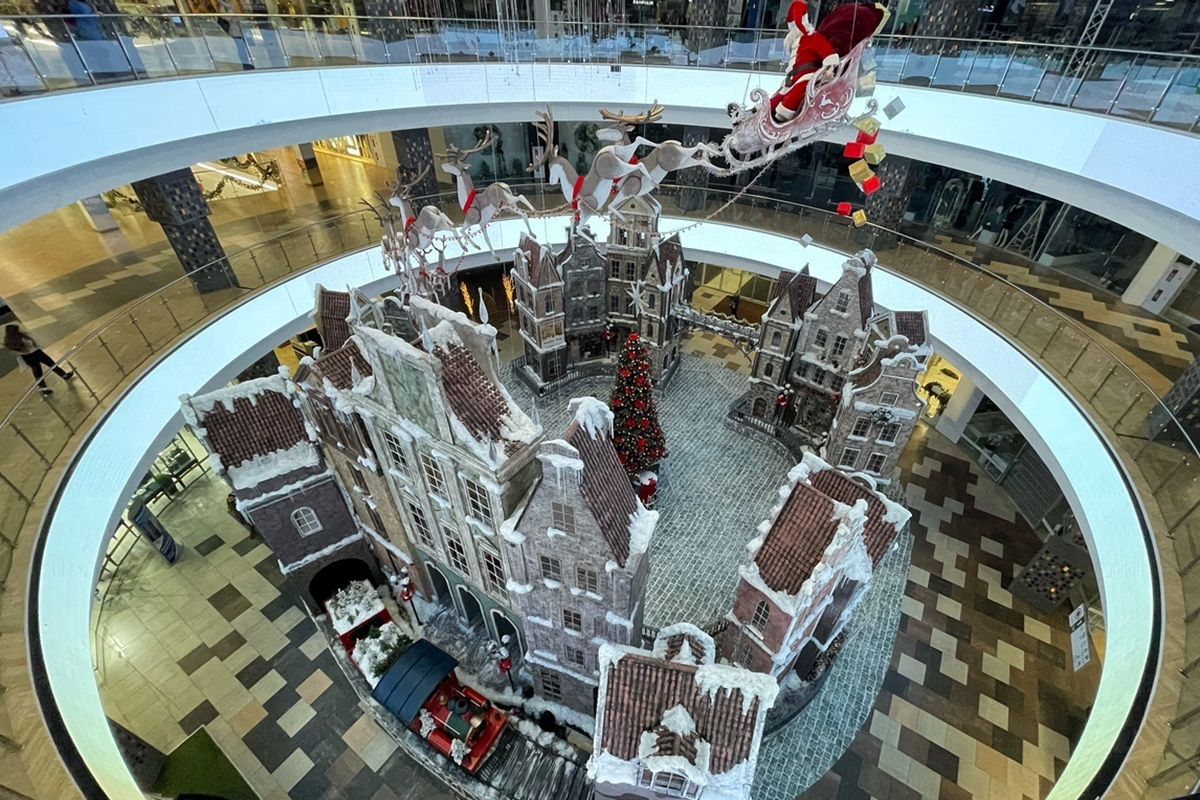 На первом этаже "Дана Молл" открыли новогоднюю зону в виде сказочного города. Realt посмотрел, как она выглядит.
