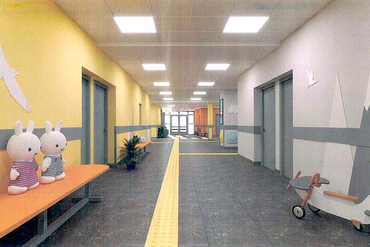 На данный момент в поликлинике идут демонтажные работы. После завершения реконструкции пациенты смогут наслаждаться современными условиями. В коридорах и вестибюле будут керамогранитные полы с тактильными полосами, а стены украсит декоративная отделка с элементами "ракета", "облако" и другими.