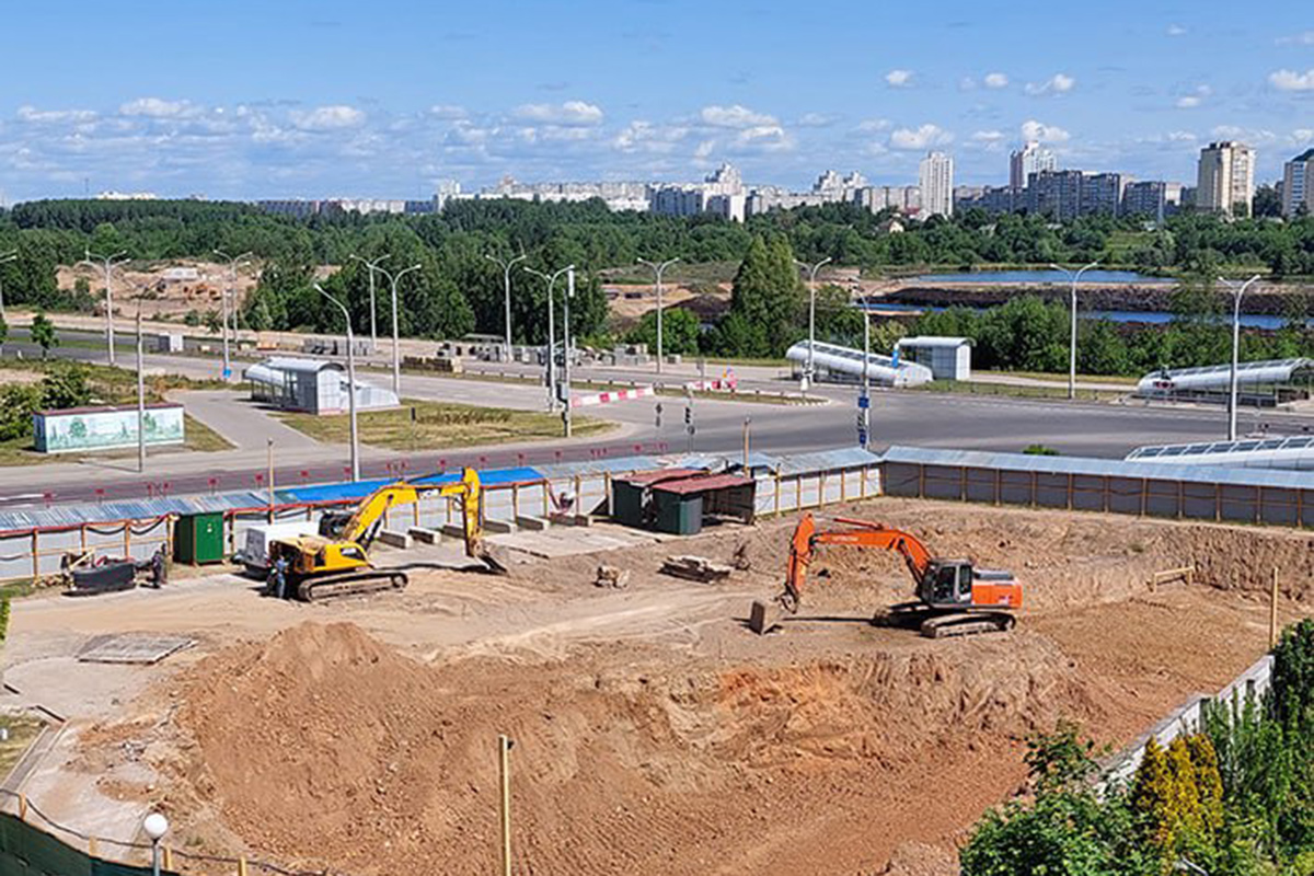 Как сообщает Telegram-канал "Минскстроя", на площадке уже оборудован строительный городок, уложены дорожные плиты на территории. Мощные экскаваторы заняты разработкой котлована.