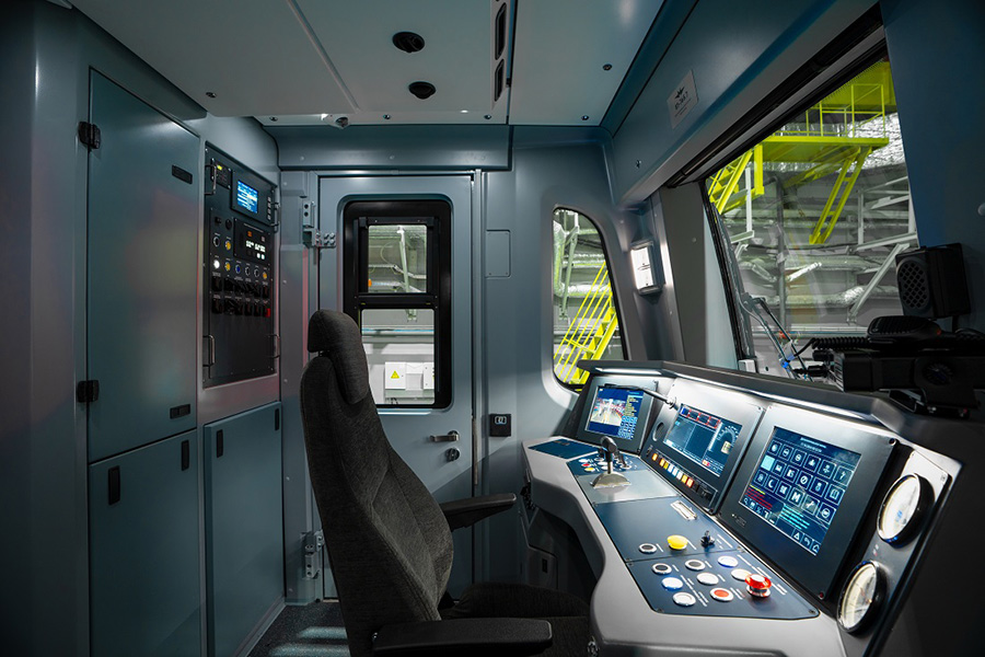 Продумана и эргономика рабочего места машиниста. В его кабине установлены кресло с подогревом, усовершенствованный пульт управления, системы климат-контроля и видеонаблюдения.