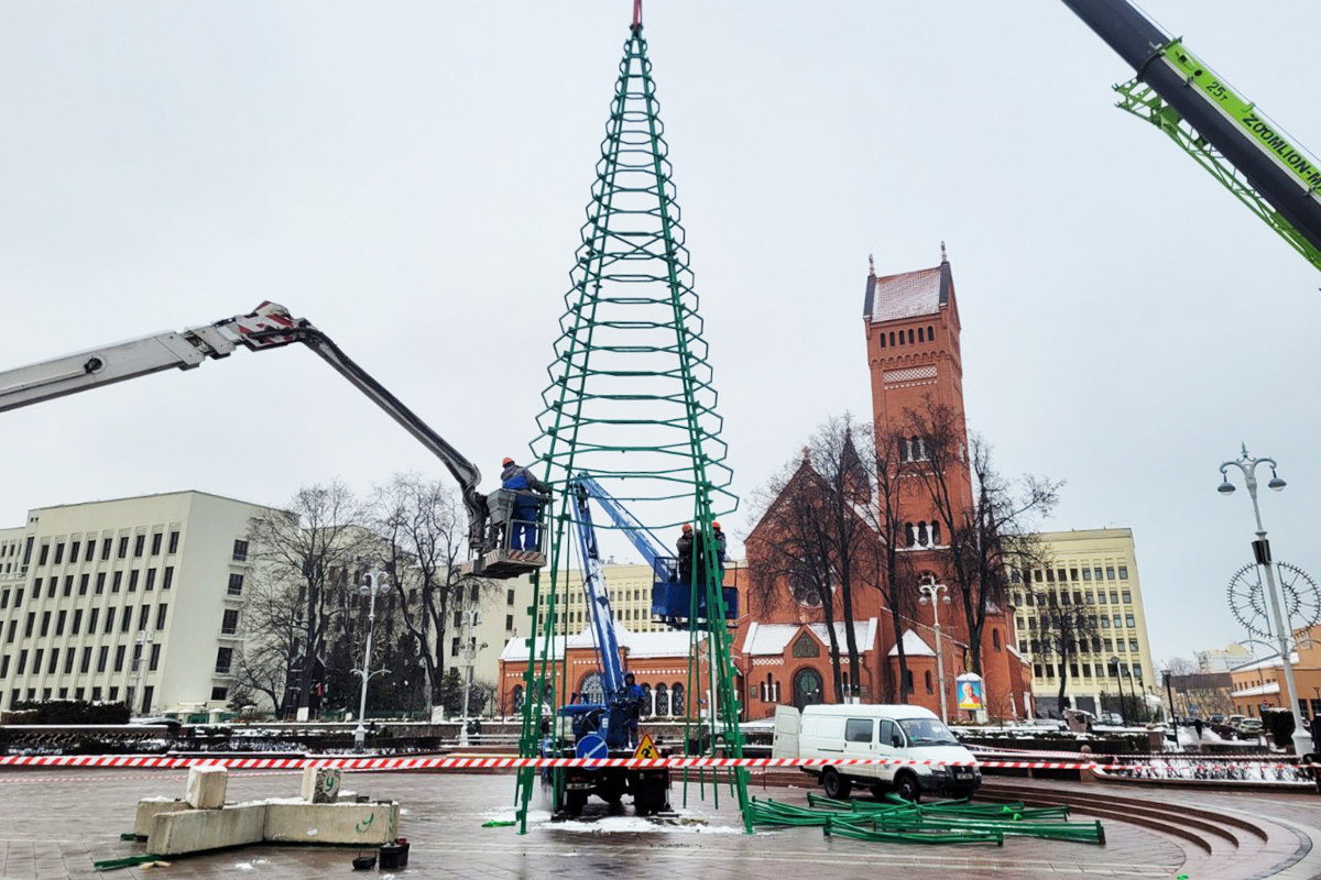 Власти столицы ранее сообщали о 25 новогодних елках, которые будут радовать минчан и гостей столицы в этом году. Корреспондент Tochka.by посмотрел, как идет установка елки на главной площади возле Красного костела.