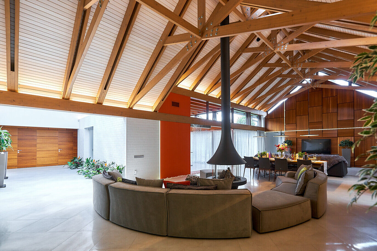 В гостиной, кажется, создали идеальную зону отдыха со стильным камином. Есть и просторная терраса, на которой с удовольствием можно ужинать летними вечерами.