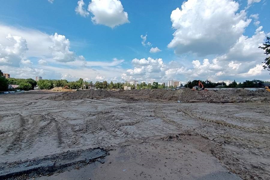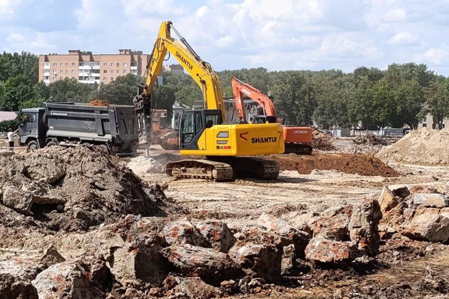 В данный момент механизаторы "Спецстроя" демонтируют оставшиеся цементобетонное покрытие и подпорные стенки. Идет вывоз растительного грунта и рассортированных строительных отходов. Их уже вывезли порядка 20 тыс. тонн, 12 тыс. из которых только битый кирпич.
