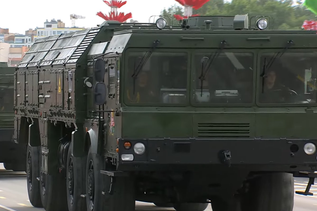 Затем состоялась демонстрация современных образцов вооружений. Были и отечественные "Полонезы", и оперативно-тактический ракетный комплекс "Искандер-М", способные нести ядерный заряд.