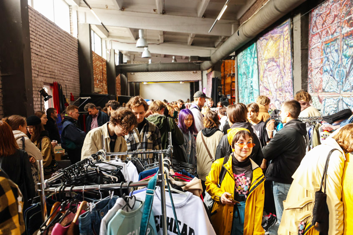 Посетить "Open Шкаф" можно 18 сентября с 12:00 до 20:00.Первое, что бросается в глаза, нескончаемое количество стоек с одеждой. Здесь можно найти юбки, брюки, свитера, худи, тренчи.