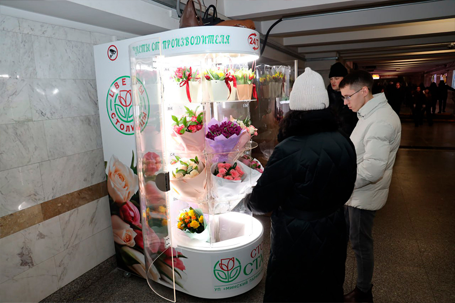 Все они – от Минского парниково-тепличного комбината. Сотрудники обещают дистанционно следить за спросом в цветомате и пополнять витрину, если та опустеет.