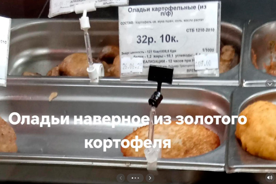 "Ну судите сами, если у них драники с мясом стоят 18 руб., а просто драники по 32 р. В понедельник снимок сделаю, сегодня просто с мясом разобрали", – ответила автор ролика.