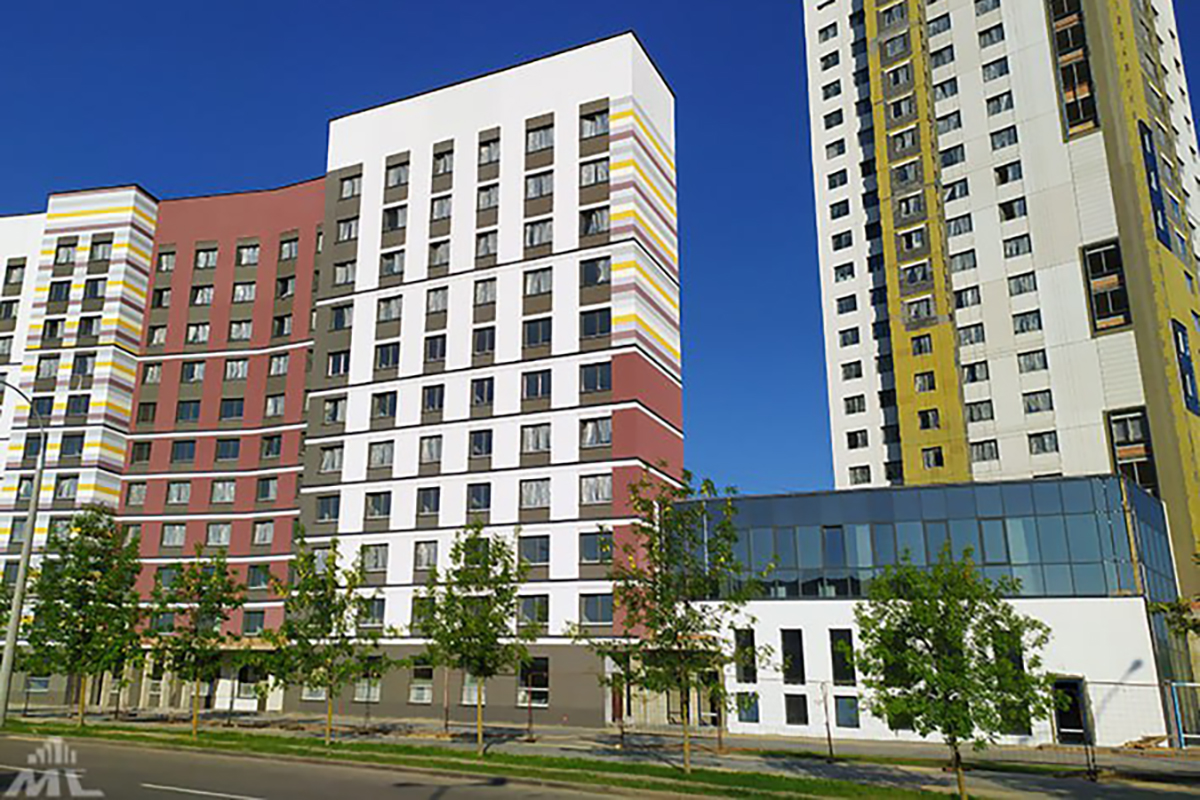 "Здесь установлены входные и межкомнатные двери, сейчас дверные блоки устанавливают в коридорах. На десяти этажах в жилых комнатах уже поклеены обои", – сообщили в "Минскстрое".