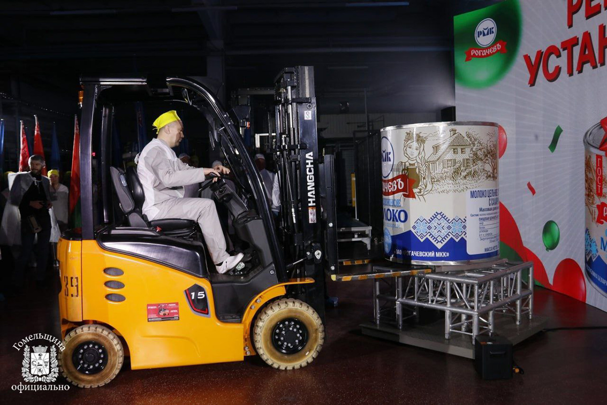 На Рогачевском МКК выпустили гигантскую банку сгущенки, сообщили в Telegram-канале Гомельского облисполкома.