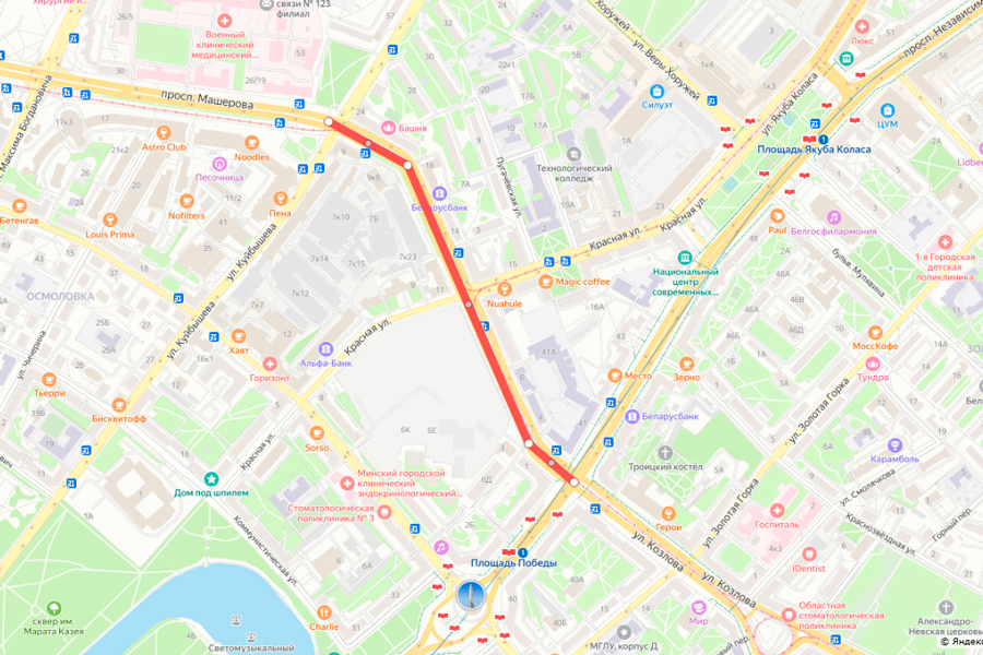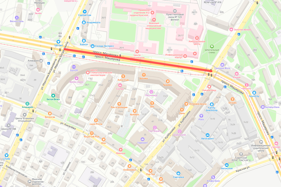 А с 20:00 30 июля будет закрыт участок проспекта Машерова от ул. Куйбышева до М.Богдановича (четная сторона).