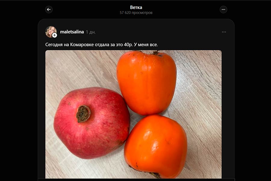 Другая комментатор отметила, что за две хурмы отдала всего Br5. Еще одна пользовательница Threads похвасталась, что в начале сезона на Таборах купила ящик хурмы.
