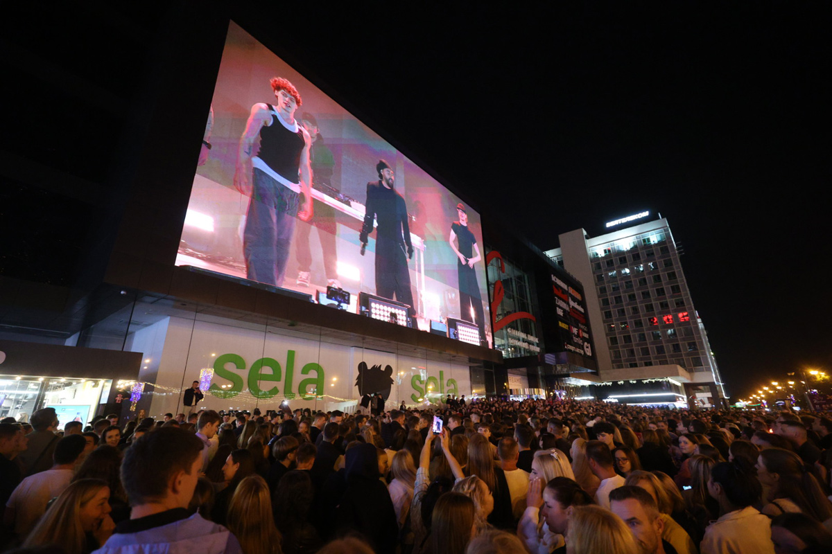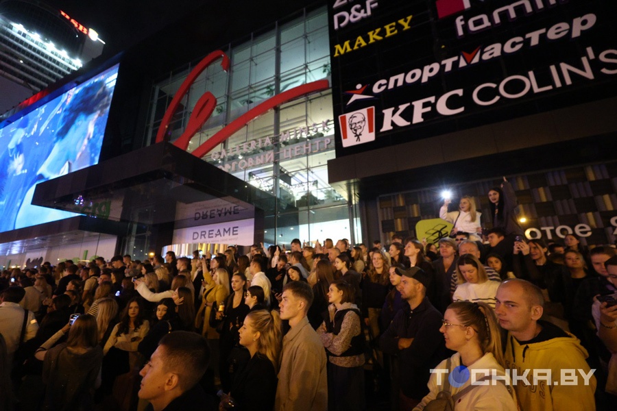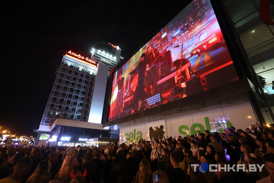 Людей так много, что они вышли на дорогу, а за концертом наблюдают с огромного экрана "Галереи".