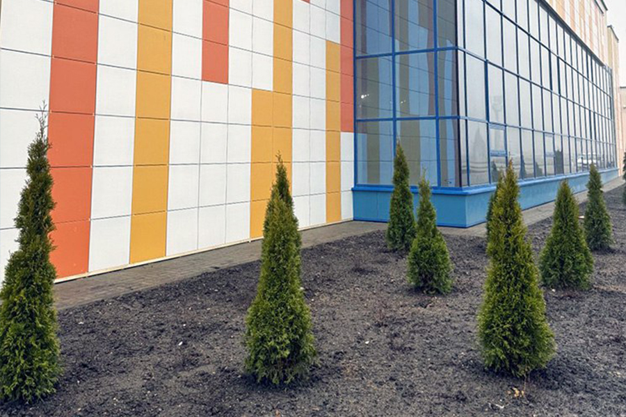 Сейчас остались работы по благоустройству территории, отделке фасада здания и внутреннему оформлению.