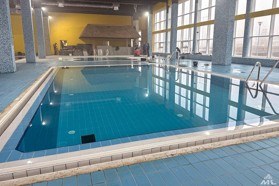 Для жителей "Каменки" оборудуют 3 бассейна: большой на 25 м с водопадом, водяными пушками и аэрогейзером, 10-метровый для обучения плаванию и детский 8×4 м.