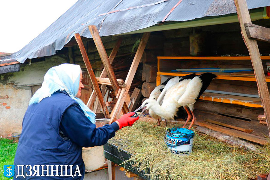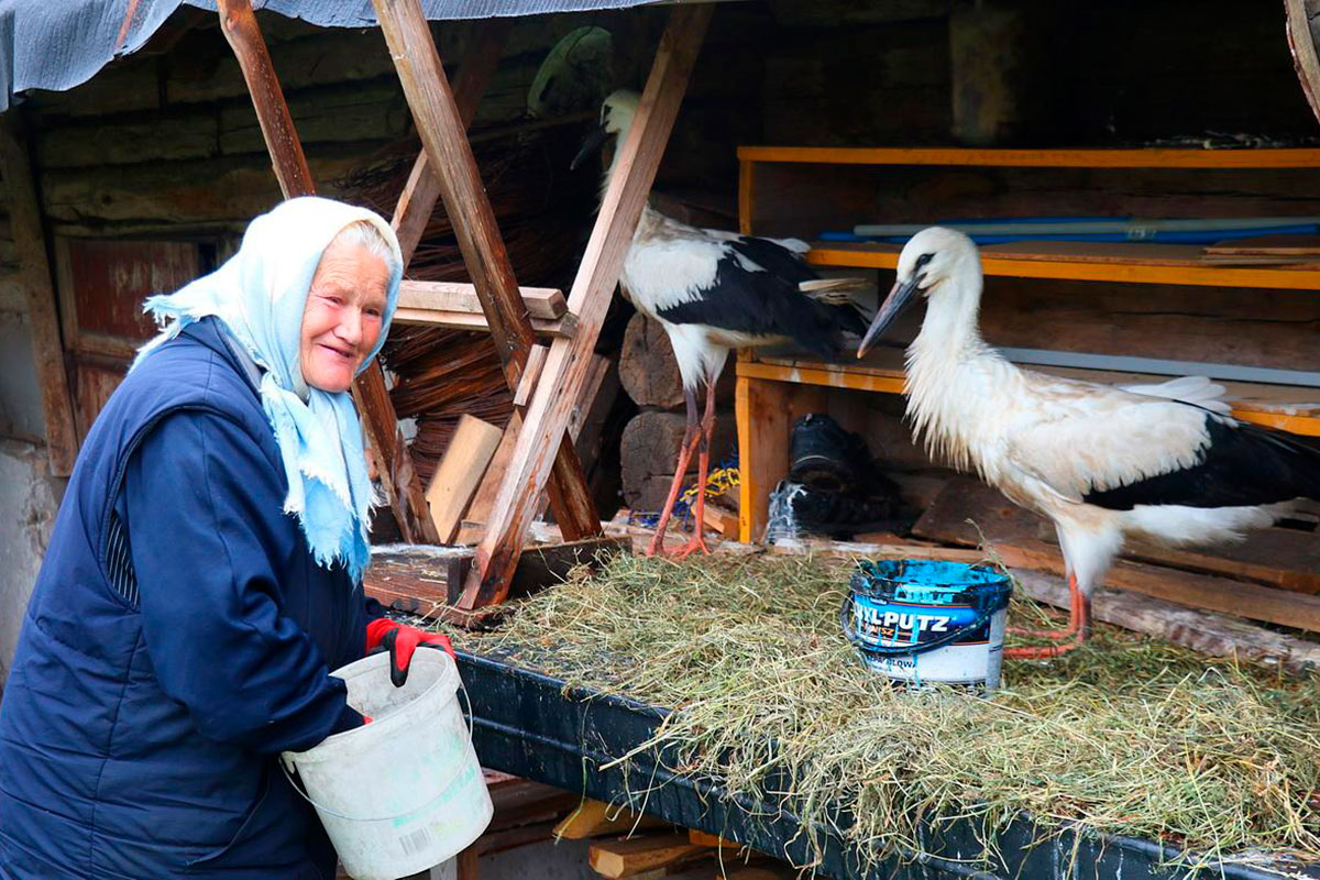 Аистята уже узнают свою спасительницу и приветствуют ее радостным писком.
