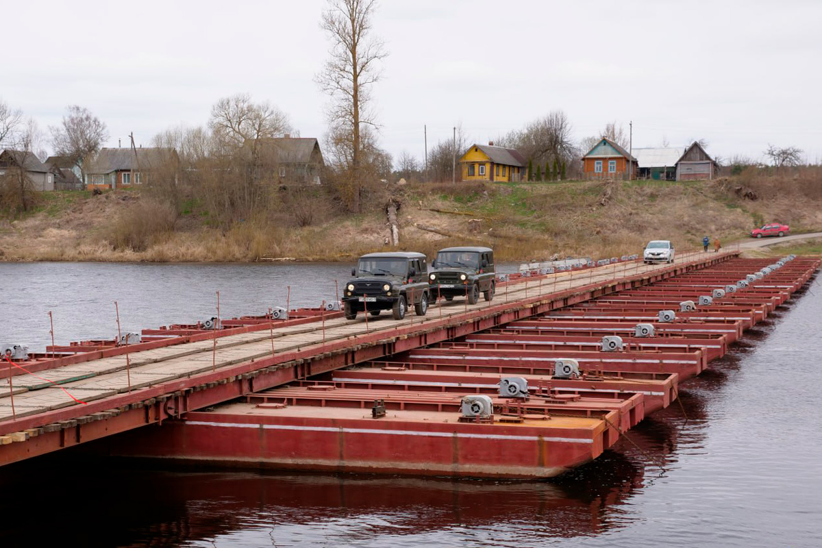 Понтонный мост через Двину навели военные 30-й отдельной железнодорожной бригады.