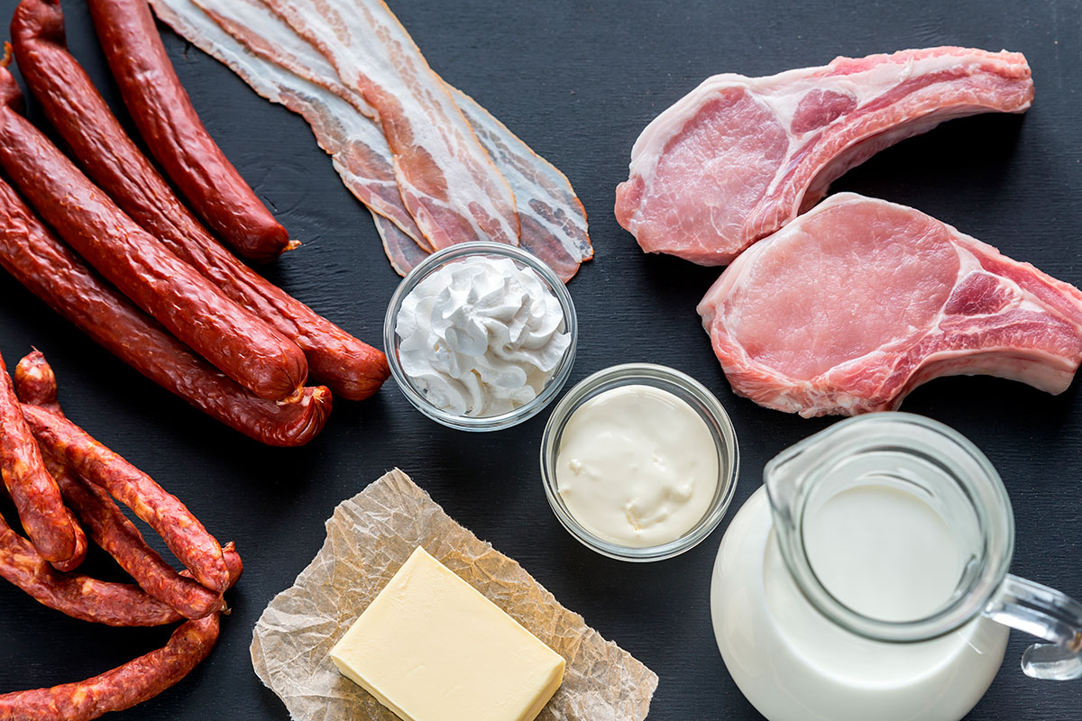 Кроме этого, в наборе были две палки сервелата, вареная, сырокопченая и сыровяленая колбаса, две бутылки подсолнечного масла, несколько упаковок сыра и сливочного масла, творог, несколько пачек сметаны и майонеза, по две банки консервированного горошка и кукурузы, сосиски, грудинка и другая мясная продукция.