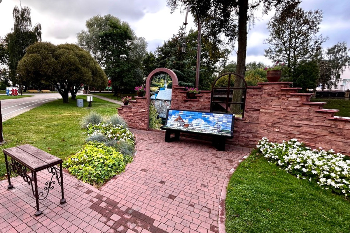 Это не просто скамейка. Это живая картина. Вернее, пазл или даже мозаика. Сама скамейка состоит из десятков небольших элементов, на каждый из которых нанесены кусочки изображения. Перевернешь в правильном порядке – получишь картину с видами Гродно.