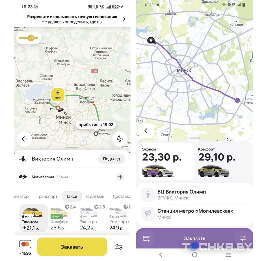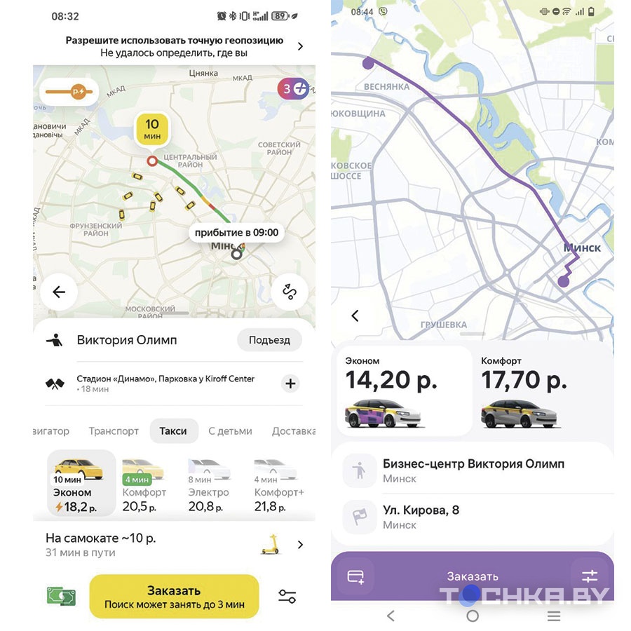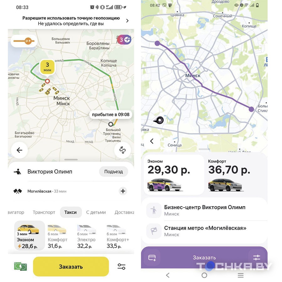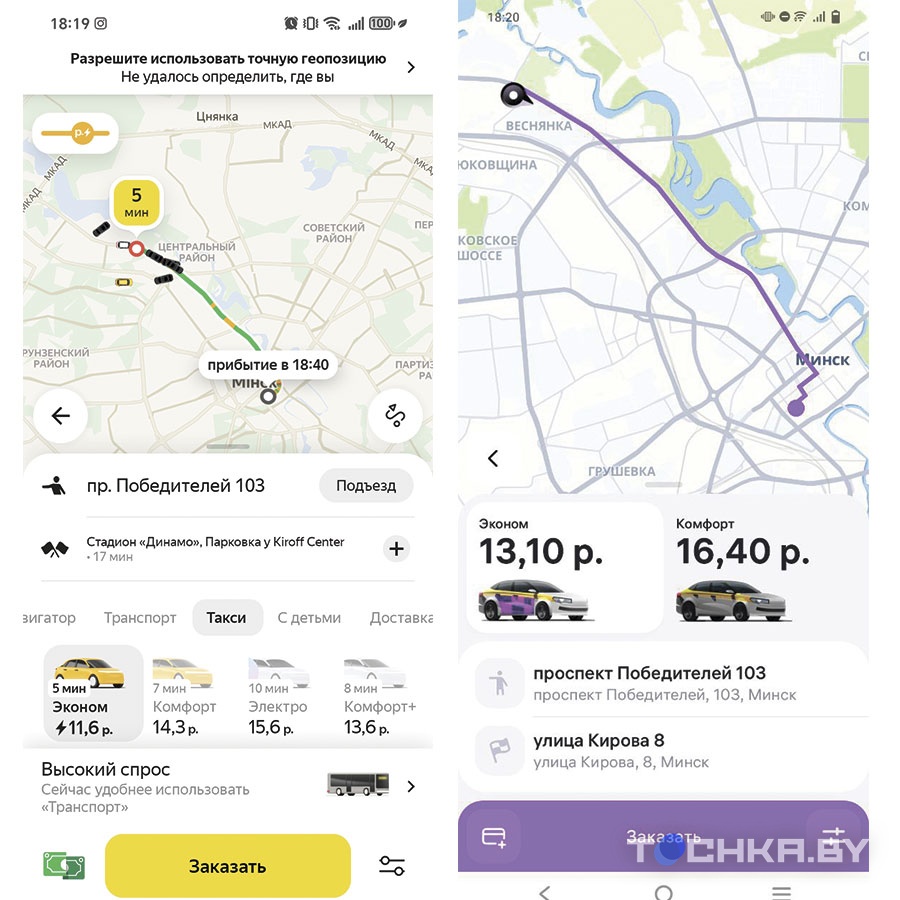 Естественно, Tochka.by не смогла упустить возможность проверить, где же будет дешевле доехать из точки А в точку Б. Для полноты эксперимента берем одинаковые адреса.