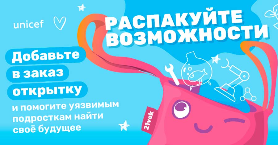 Благодаря партнерству ЮНИСЕФ и крупнейшего в Беларуси онлайн-гипермаркета 21vek.by у взрослых белорусов, покупателей онлайн-ритейлера, теперь будет возможность поддержать подростков, просто добавив благотворительную открытку в заказ.
