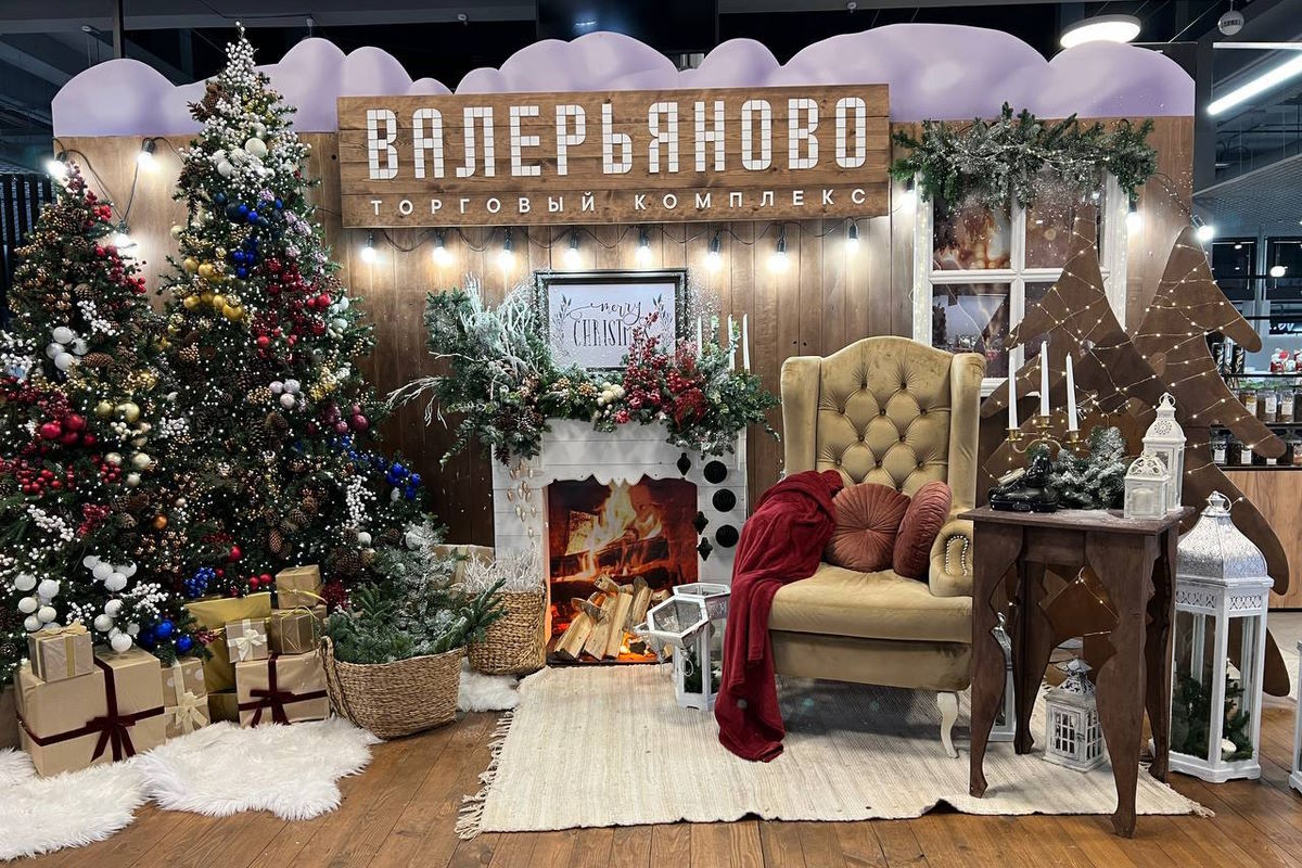 Именно такая фотозона создана в этом году в ТК “Валерьяново”. Камин, кресло сказочного старика, елки в огоньках и под ними красиво запакованные подарки. Сфотографируйте своих детей в таком интерьере, сфотографируйтесь сами – и вы непременно запечатлеете улыбки счастливых мгновений!