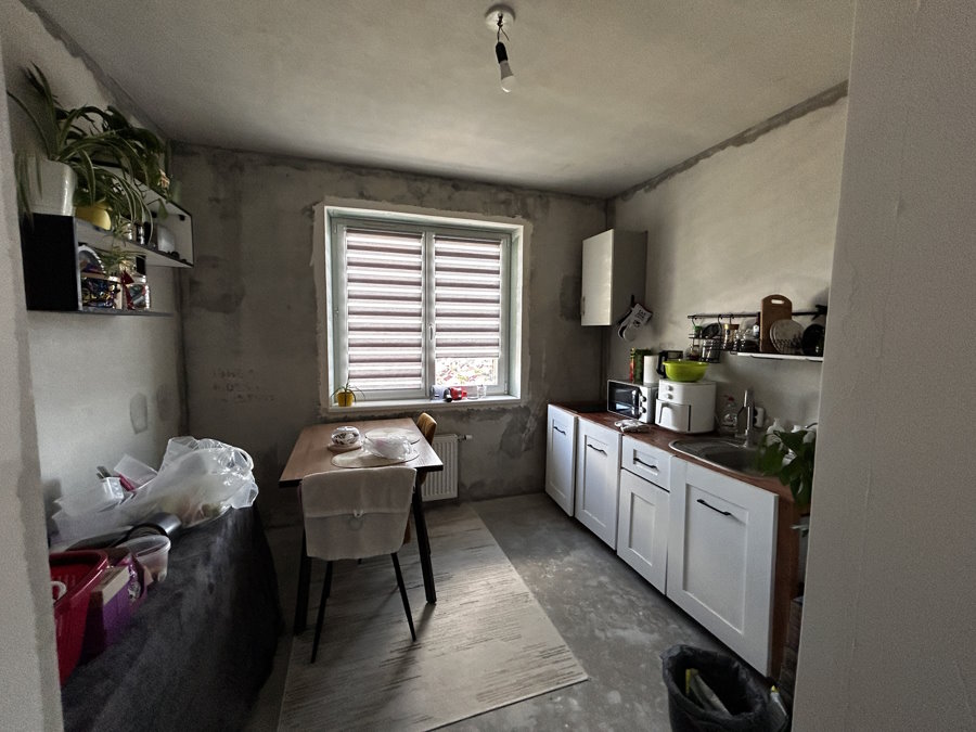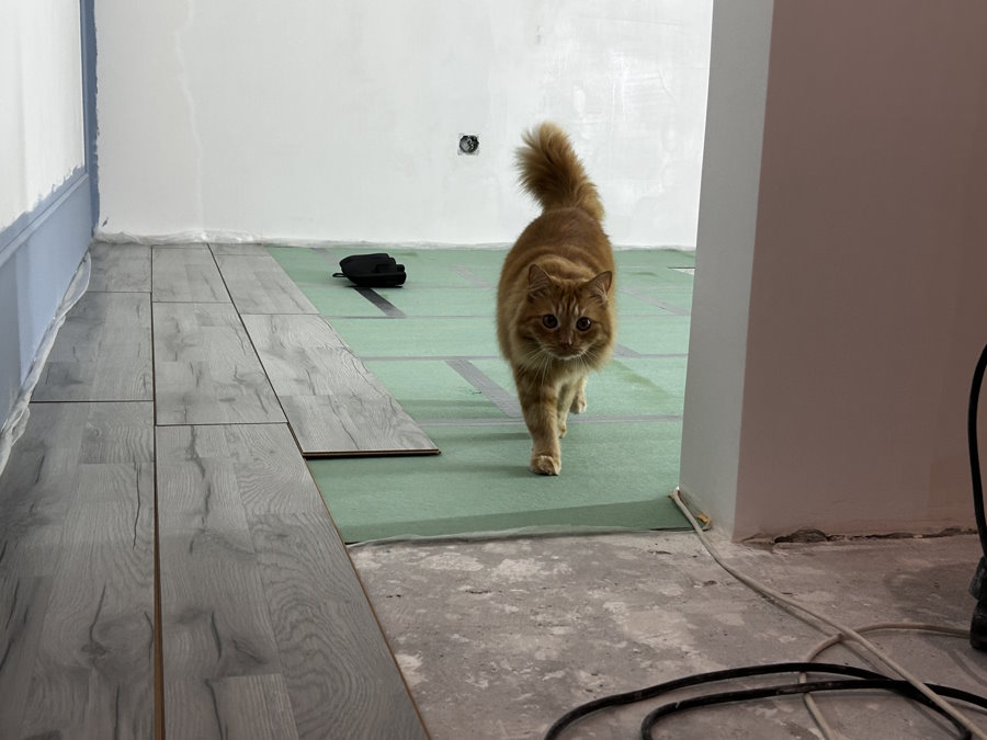С момента заселения прошел год. Ремонт продолжается, хотя и сделано уже немало. Полностью готова одна комната, есть черновая отделка в коридоре. Дальше необходимо завершить работы на кухне и переключиться на ванную и туалет.