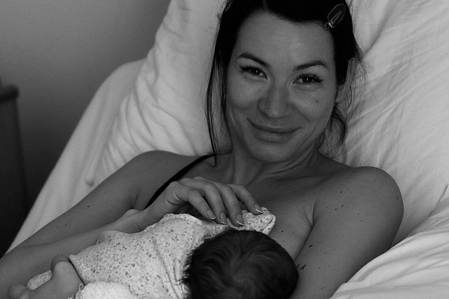 Роды прошли при поддержке возлюбленного, Олега Ледвича, который сам перерезал пуповину.