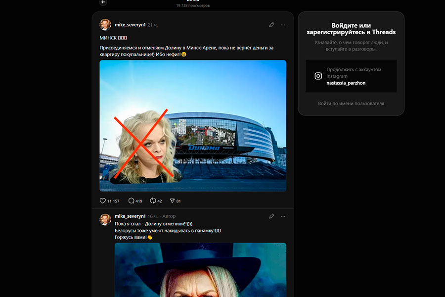 Белорусы в Threads обсуждают, что не намерены видеть ее на "Минск-Арене", пока артистка не вернет деньги покупательнице.