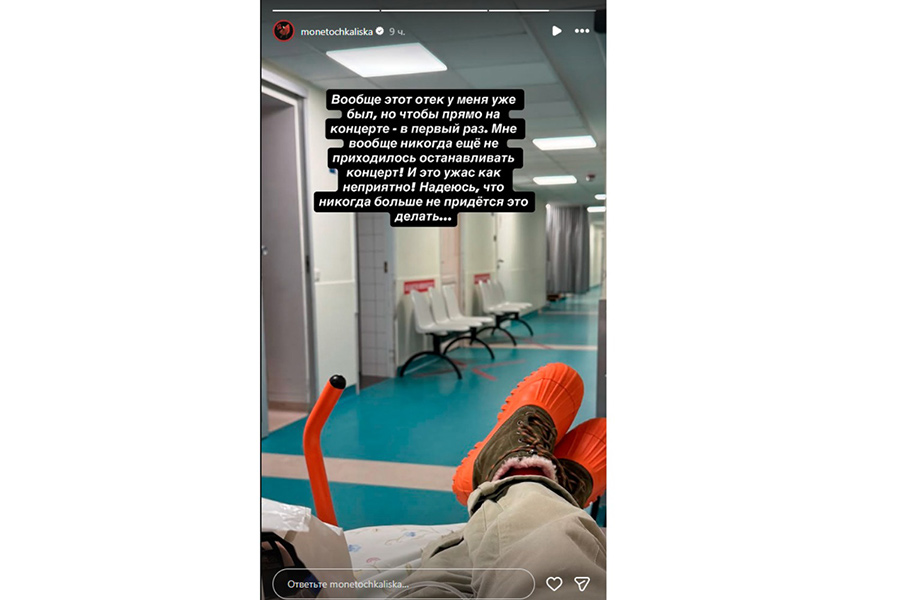 Спустя какое-то время Монеточка вышла на связь в соцсетях и объяснила, что произошло. Оказывается, прямо во время выступления у певицы случился отек Квинке.