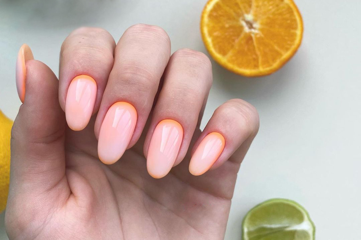 Если у вас длинные ногти, то будет достаточно покрыть их полупрозрачным бежевым или персиковым лаком, который чуть сгладит контраст между кончиком и пластиной ногтя.