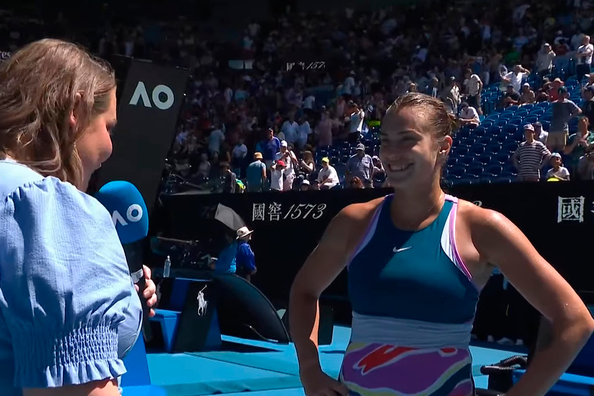 Это было обычное послематчевое интервью, которое Арина давала после победы над Донной Векич из Хорватии в четвертьфинале. Соболенко даже не успела ответить на первый вопрос, как кто-то крикнул с трибун: "Арина, ты выйдешь за меня?" Теннисистка не растерялась и мгновенно отметила: "Давай это обсудим попозже".