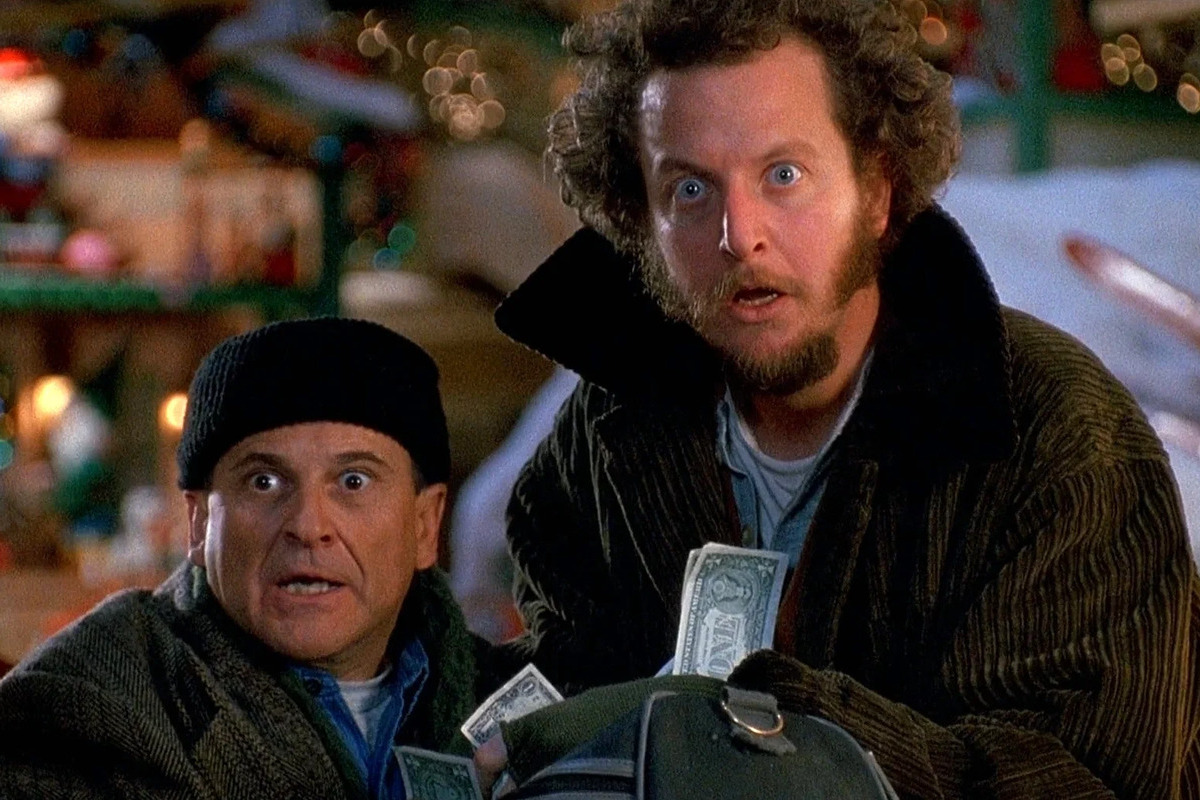 Известно, что американский актер Дэниел Стерн, исполнивший роль незадачливого грабителя Марва Мерчинса, вероятно, не захотел оставаться один дома, а потому якобы подумал воспользоваться услугами девушки легкого поведения.