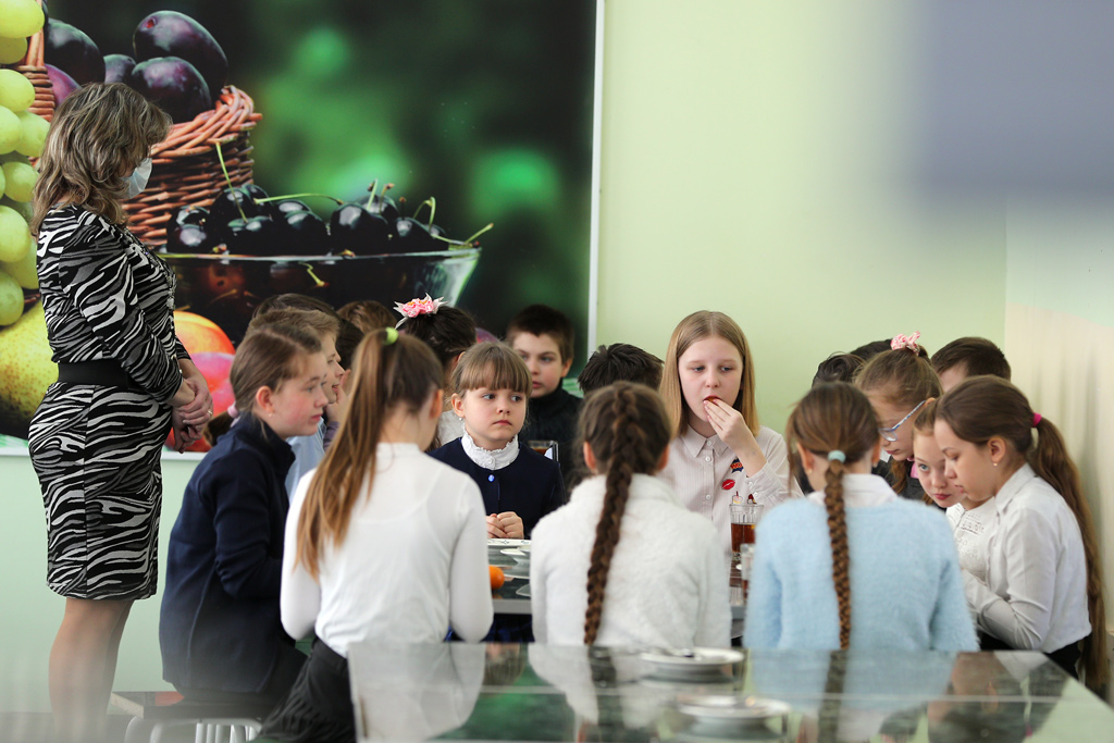 Головченко пообщался с детьми, пока те обедали в столовой пельменями. Школьники рассказали, что им нравится. В числе популярных блюд – борщ, молочный суп, курица и рыба.