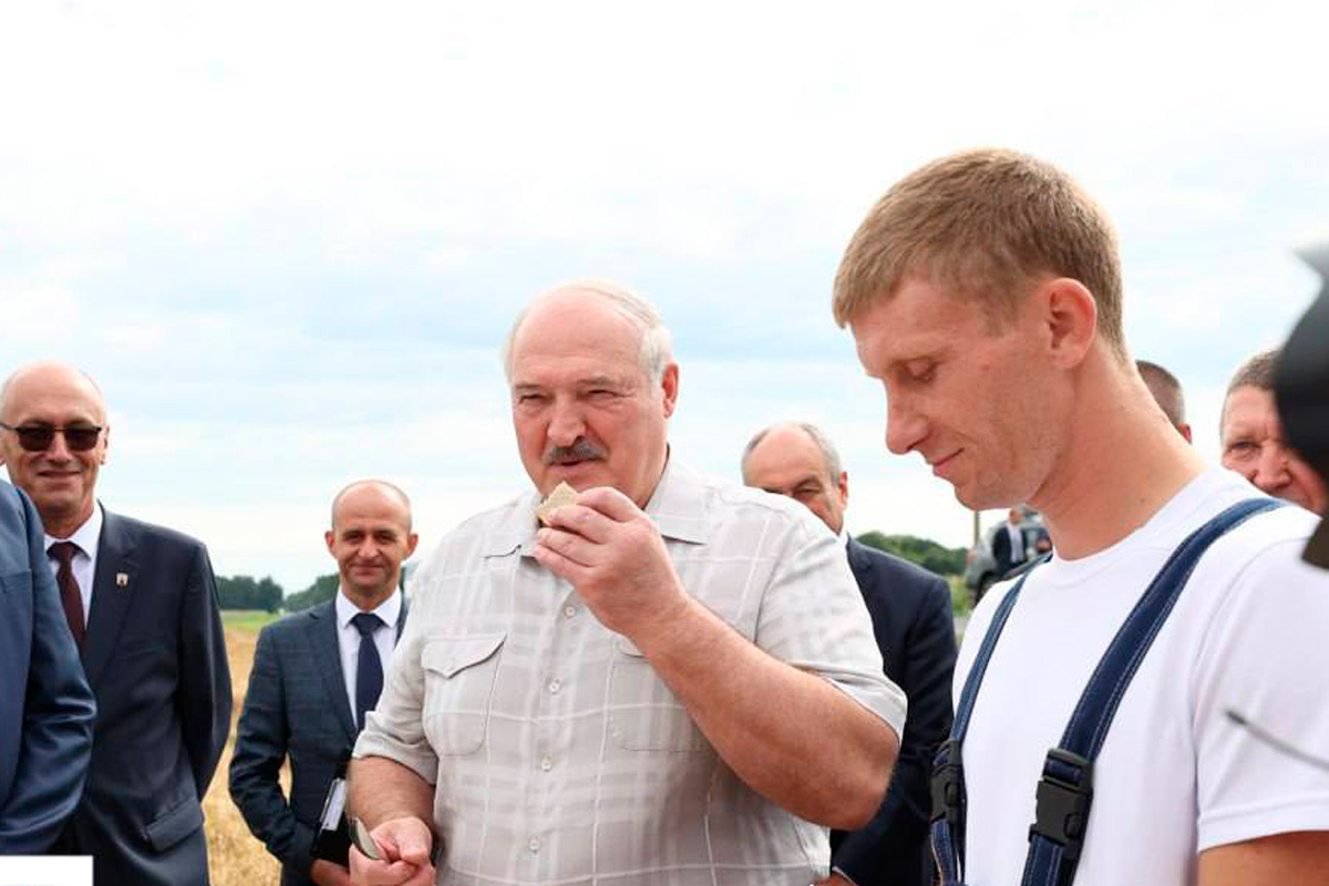 Александр Лукашенко во время рабочего визита в Берестовицкий район решил изучить, чем кормят комбайнеров во время уборочной.
