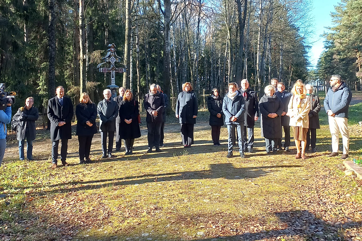 Представители посольств стран Евросоюза, Великобритании и Швейцарии посетили урочище "Куропаты". Как пояснили в представительстве ЕС в Беларуси, этот визит носит "традиционный характер" – как и в предыдущие годы, дипломаты почтили память жертв репрессий.