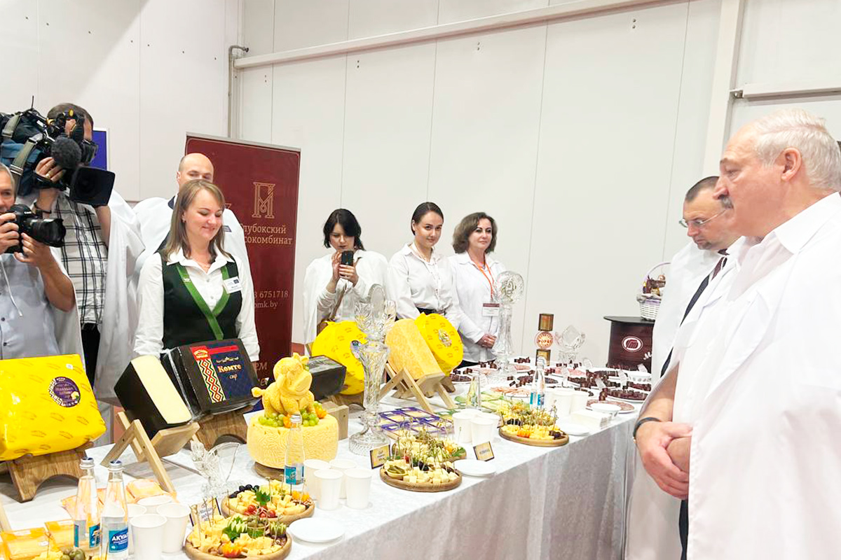 Президент снял пробу также и с мясных деликатесов. Видео об этом выложил Telegram-канал "Пул Первого". Во время дегустации мясной нарезки президент сказал, что если журналисты голодные – реклама пропала. "Пусть становятся и едят!", – отметил белорусский лидер.