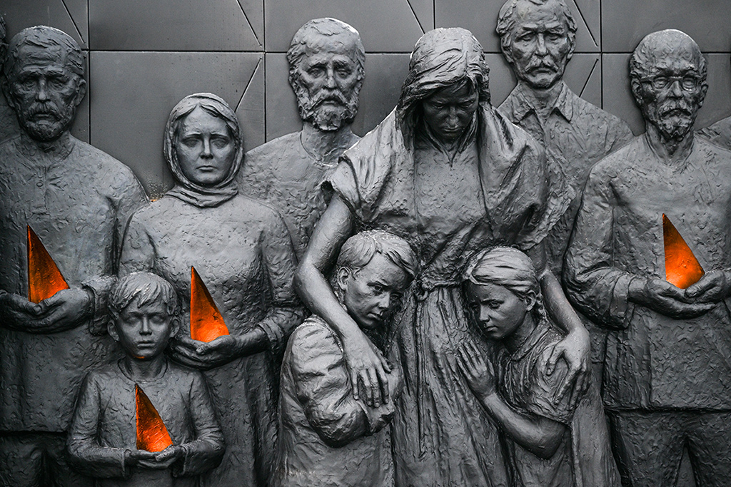 У подножия монумента зажжен Вечный огонь, а вокруг него на разных языках высечены названия концлагерей. Здесь же – 150 барельефов, на которых изображены мирные жители, убитые фашистами.