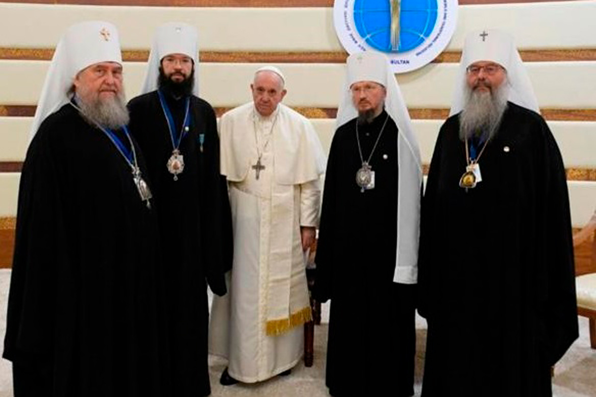 Папа Римский принимает участие в VII Съезде лидеров мировых и традиционных религий в Казахстане, куда прибыл и Митрополит Вениамин.